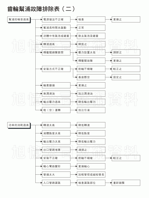 技術資料 “ 齒輪幫浦的故障排隊表”內容如下,請參考: